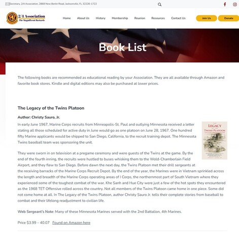 2nd Battalion, 4th Marine Association has "The Legacy of the Twins Platoon" listed as recommended reading.